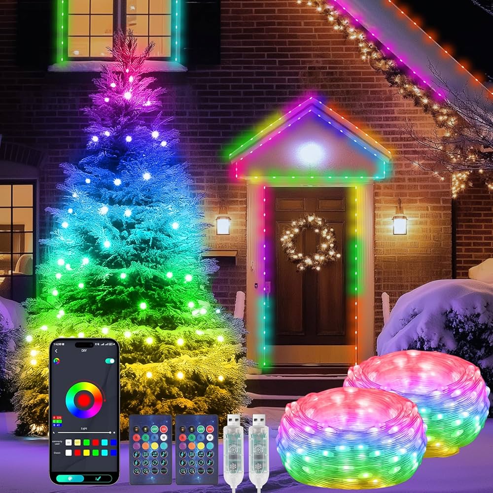 Las Luces Inteligentes Lafir están diseñadas para realzar tu árbol con colores vibrantes y efectos animados que lo hacen lucir mucho más vivo. Su brillo parejo y su tono cálido-multicolor crean una ambientación navideña moderna y súper llamativa.