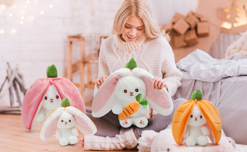Disponible en 3 encantadores modelos – Conejo envuelto en una zanahoria, Conejo envuelto en una fresa y una tierna Capibara – cada uno ofrece una experiencia mágica que despierta la imaginación y acompaña tanto en el juego como en el descanso